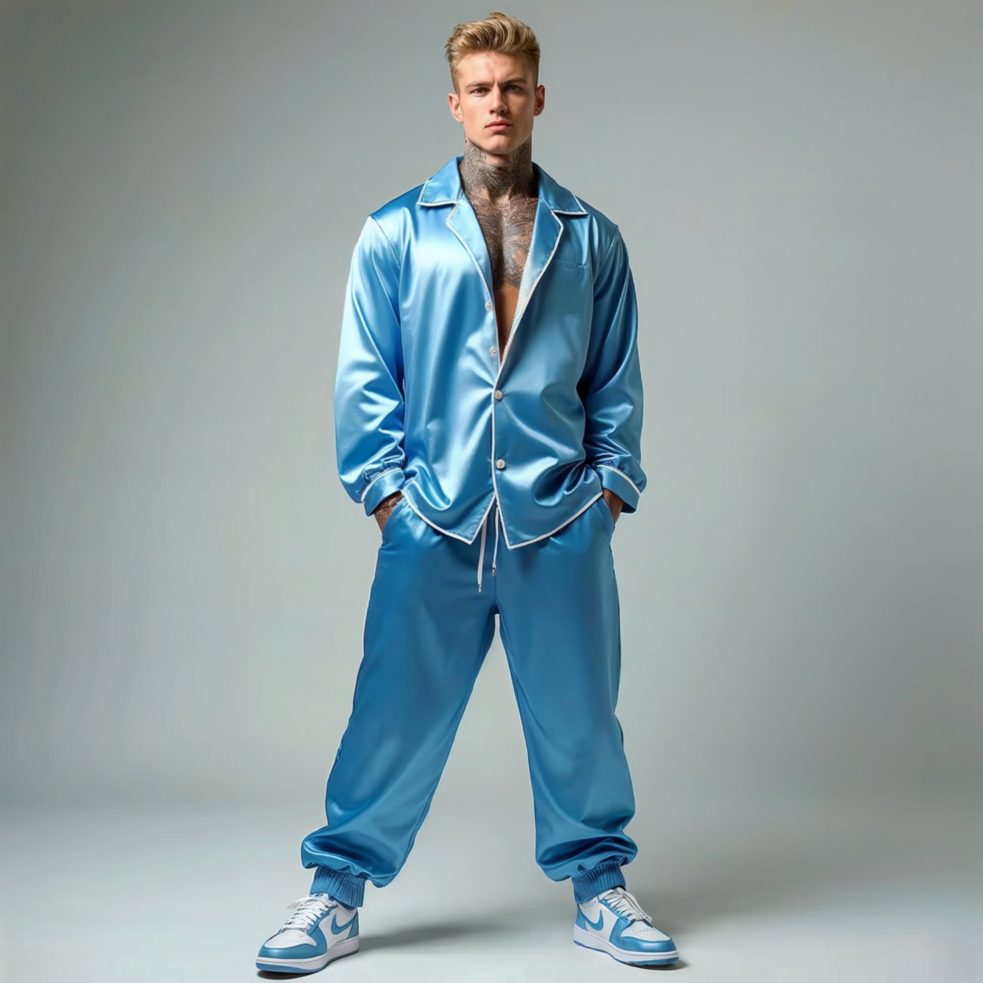 This exclusive satin pajama set, proudly made in Spain, seamlessly blends the luxury of loungewear with the sophistication of streetwear. Inspired by delicate confections, this limited-edition design is crafted with premium-quality satin for a soft, lightweight feel and a signature glossy finish.