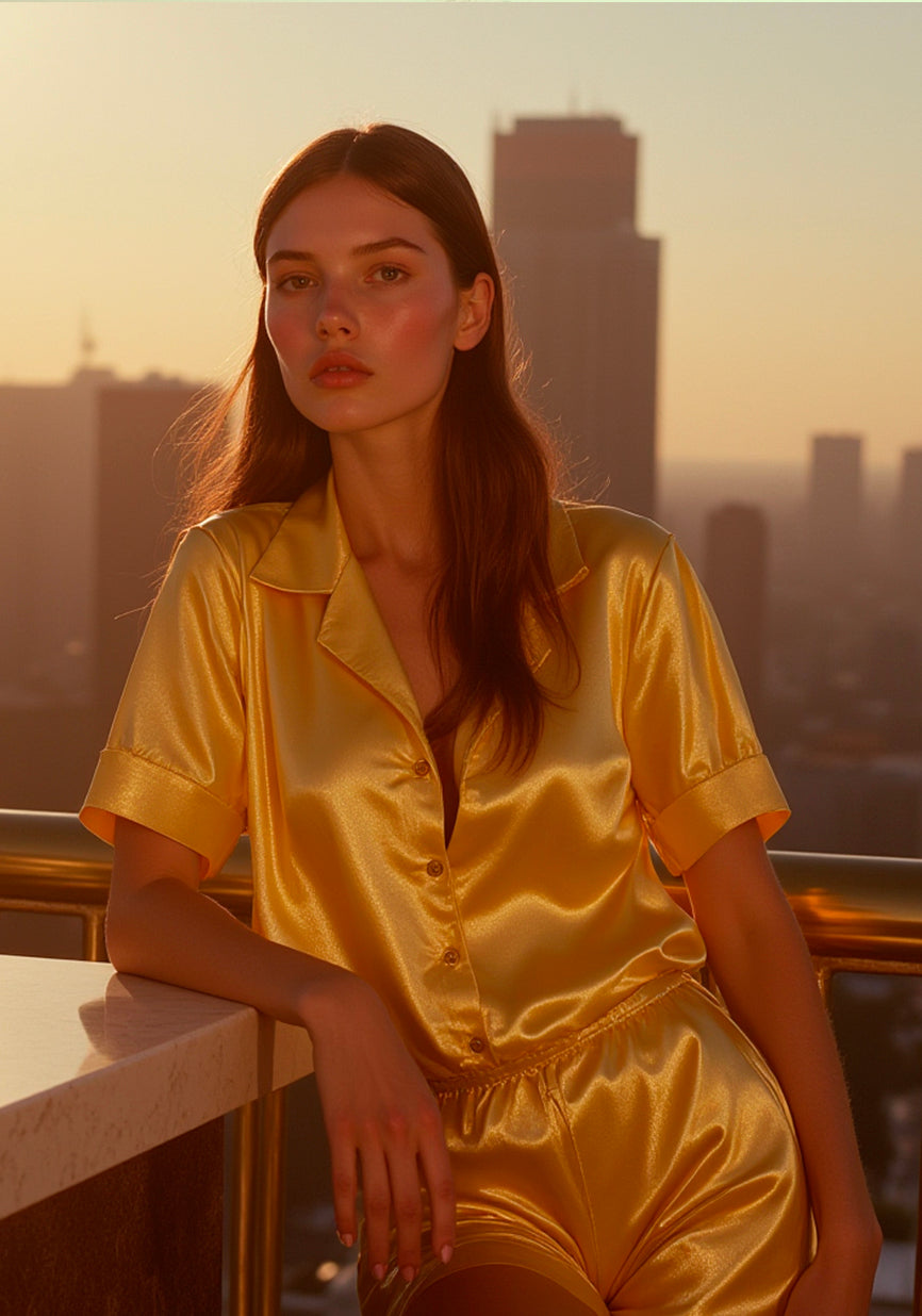 This exclusive satin pajama set, proudly made in Spain, seamlessly blends the luxury of loungewear with the sophistication of streetwear. Inspired by delicate confections, this limited-edition design is crafted with premium-quality satin for a soft, lightweight feel and a signature glossy finish.
