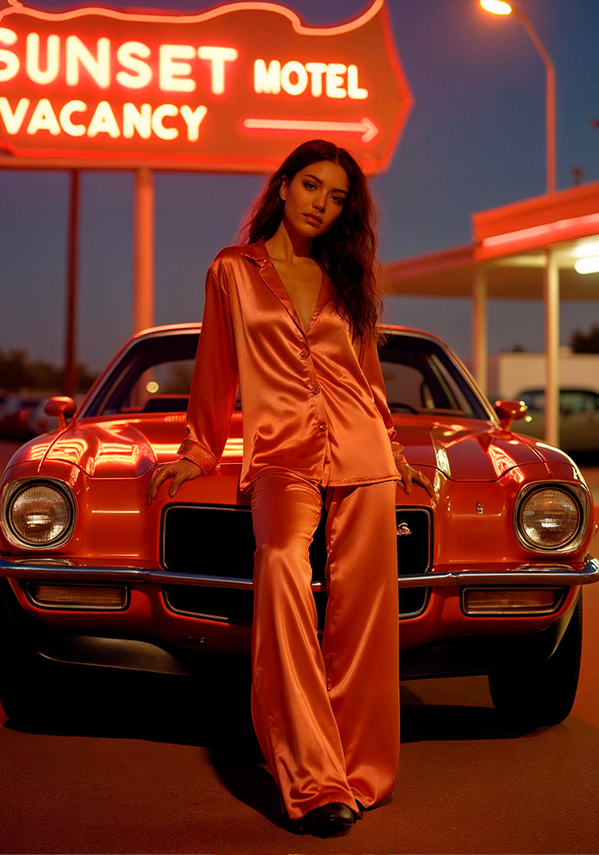 This exclusive satin pajama set, proudly made in Spain, seamlessly blends the luxury of loungewear with the sophistication of streetwear. Inspired by delicate confections, this limited-edition design is crafted with premium-quality satin for a soft, lightweight feel and a signature glossy finish.