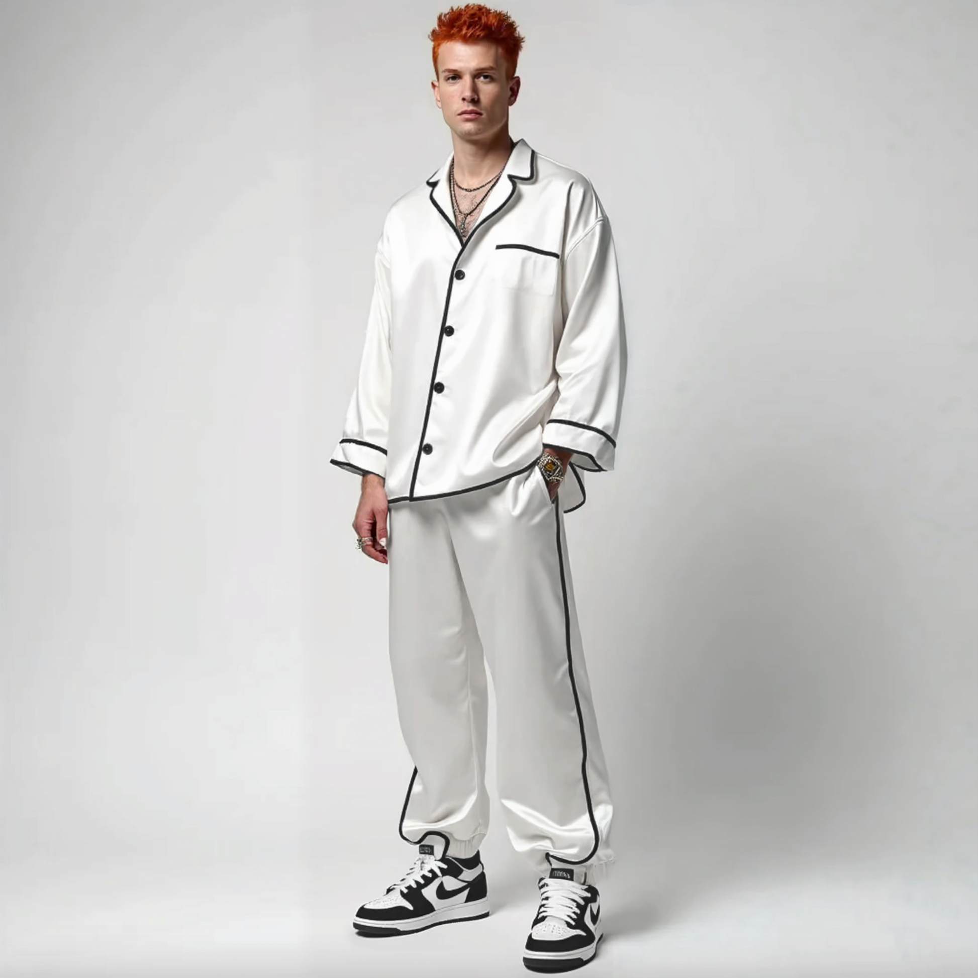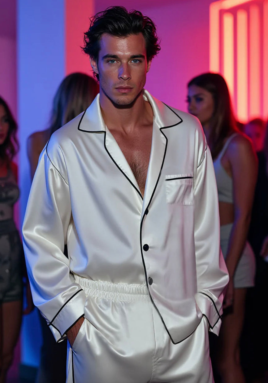 This exclusive satin pajama set, proudly made in Spain, seamlessly blends the luxury of loungewear with the sophistication of streetwear. Inspired by delicate confections, this limited-edition design is crafted with premium-quality satin for a soft, lightweight feel and a signature glossy finish.