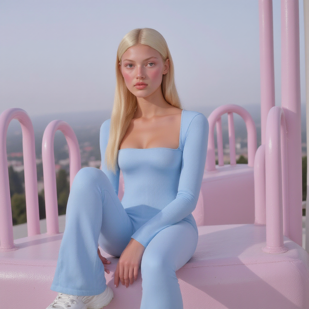 This sporty jumpsuit features a sleek, form-fitting design in soft pastel blue. The square neckline and long sleeves give the piece a modern, minimalist aesthetic, while the fitted body and legs highlight a flattering silhouette. The fabric has a textured feel, adding dimension to the otherwise smooth design. It’s a versatile piece that can be worn for both active workouts and casual outings, providing comfort and style in one.